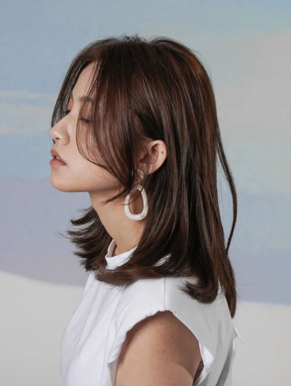 她也強調(diào)不要讓太陽穴位置的劉海塌下去,可以在耳邊沿著根部用直發(fā)棒卷出S形弧度,動作要輕盈,這樣若隱若現(xiàn)地露出耳朵會更有靈氣,也能修飾臉型。
