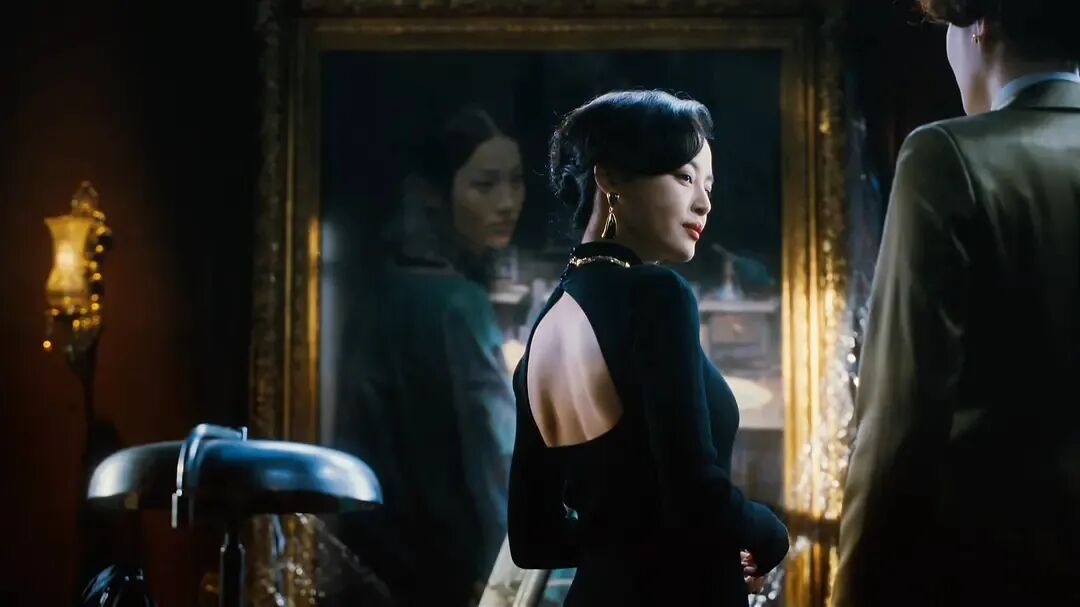這老上海風(fēng)情的烏黑卷發(fā),呼應(yīng)了大紅唇、簡潔禮服和各種璀璨的配飾,瞬間立住了至真園老板娘李李的形象。她霸氣、華貴,擅長步步為營,有一股敢愛敢恨的強大能量。
