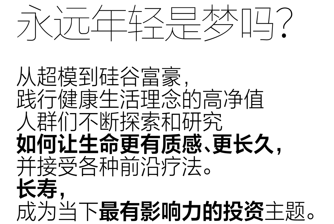 人類(lèi)發(fā)展至今總是伴隨著“長(zhǎng)生不老”的故事,而隨著科學(xué)的發(fā)展,它開(kāi)始變得迷人而立體、人人都能獲益,不再是明星富豪專(zhuān)屬。