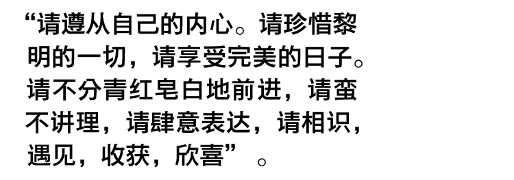 我想寫(xiě)長(zhǎng)篇小說(shuō),但不會(huì)為自己設(shè)定何時(shí)開(kāi)始,以我對(duì)自己的了解,順其自然,享受過(guò)程。做音樂(lè)和寫(xiě)作像在照鏡子,說(shuō)我想說(shuō)的話,寫(xiě)我想聽(tīng)的歌,如果它們發(fā)出去正好有人喜歡,我會(huì)覺(jué)得我們共情了彼此的想法;如果你不喜歡,也沒(méi)關(guān)系。只有演戲不是這樣,我在摸索演戲什么是好、什么是壞,在尋找標(biāo)準(zhǔn)。同時(shí),我希望大家看到我塑造不一樣的角色,看到我的突破,希望有一天能讓大家覺(jué)得我配得上大家所認(rèn)為的幸運(yùn)。