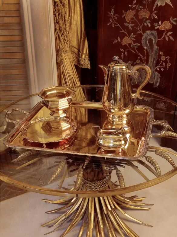 然而縱觀香奈兒女士私人寓所中的各種元素,麥穗無疑是出鏡率最高、也最讓人印象深刻的元素之一。從客廳顯眼處由黃銅制成的麥穗花束,到珠寶工匠Robert Goossens專門為她打造的金色底座小麥餐桌,再到壁爐上的木質(zhì)麥穗雕花,甚至是掛畫中的獅子嘴里,也銜著一支麥穗,可見麥穗對于她的重要意義。